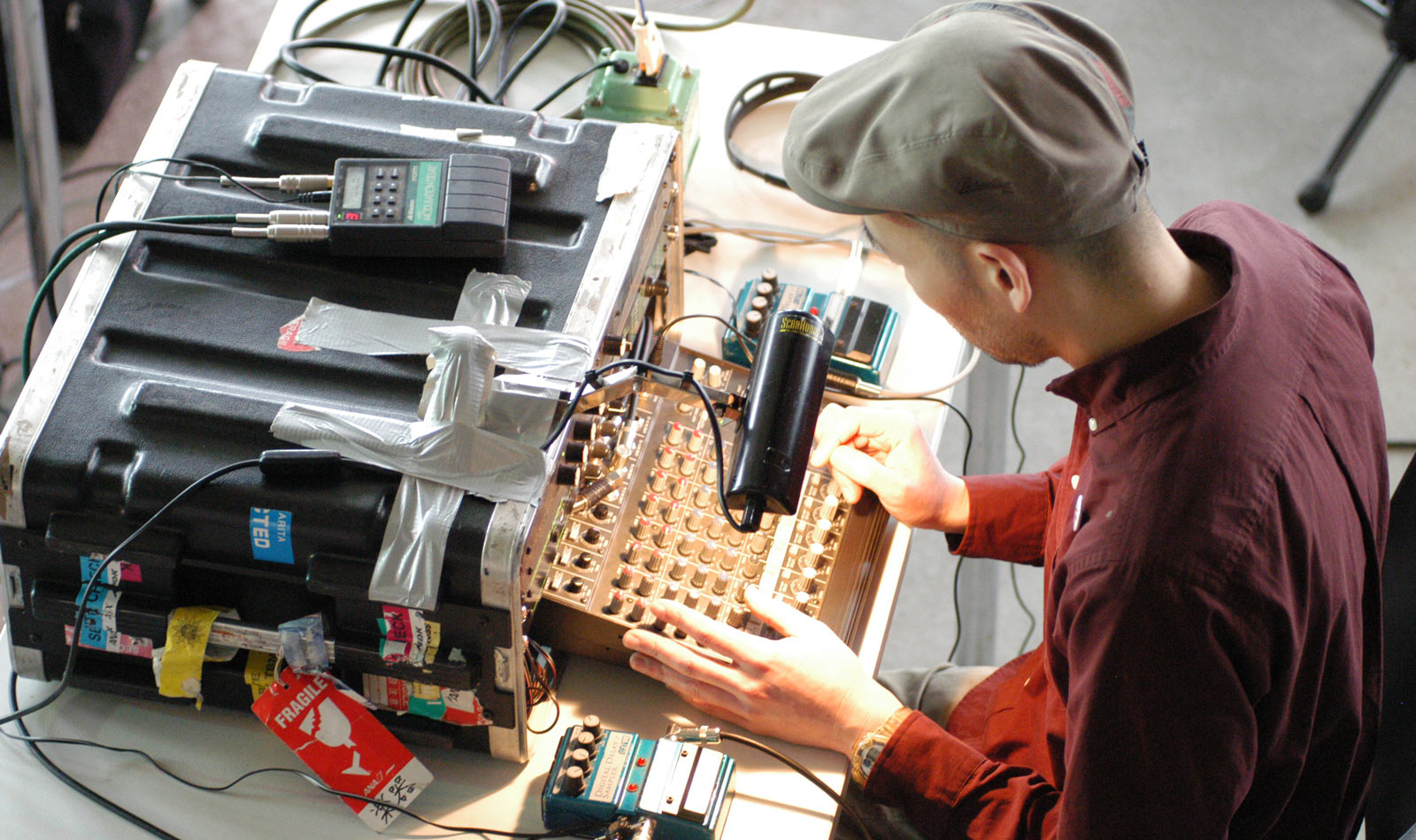 You’re not supposed to connect the output of a mixing board to its input. “You might see a caution notice in a manual for a mixer if you buy one, saying ‘This might cause feedback,’” says Toshimaru Nakamura, one of Japan’s leading experimental musicians. “Feedback is probably something sound technicians want to avoid, but it sometimes makes musicians happy and excited. So, I did what the manual says not to do.” Nakamura found that after rerouting the signal back into the mixer, the resulting feedback could be controlled with its knobs and faders. In doing so, Nakamura created the no-input mixing board, an instrument that has been deployed worldwide in experimental circles.